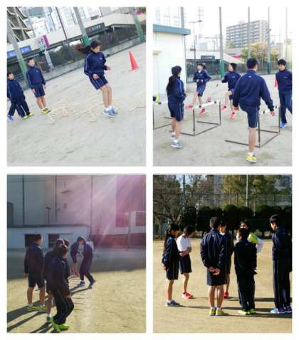 日差しのある運動場は暖かく、アップ含めた基礎練習で軽快なフットワークを見せていました。体育館では卓球部が卒業生を交えて熱心に練習に励んでいました。武道場では、柔道部が初稽古です。冷え切った畳の上を汗だくになって基礎練習を行っていました。