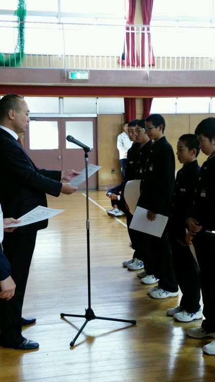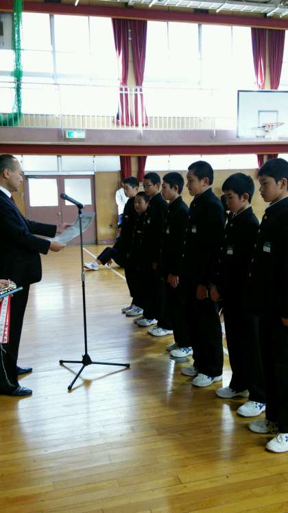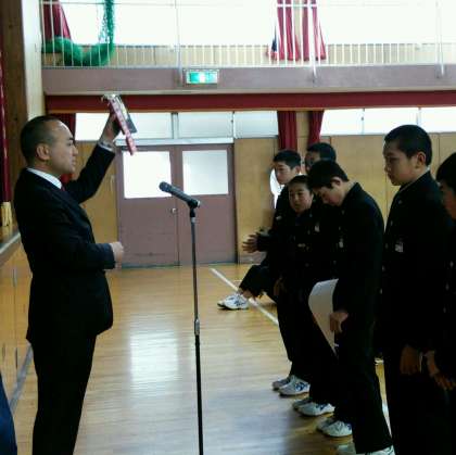 始業式に続いて、先日お伝えした、野球部 WBC大会、駅伝大会の賞状の伝達を行いました。