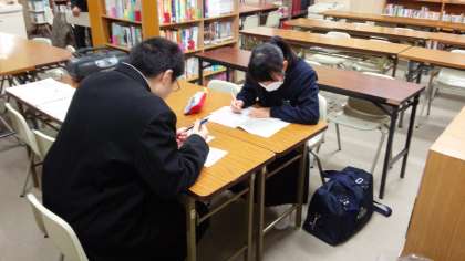 英検講習会がある日は、終学活後すぐに図書館に来て学習に取り組んでいる生徒もいます。