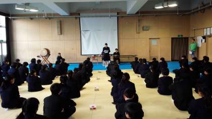 本日5,6時限目、武道場において2年生「百人一首大会」が開催されています。