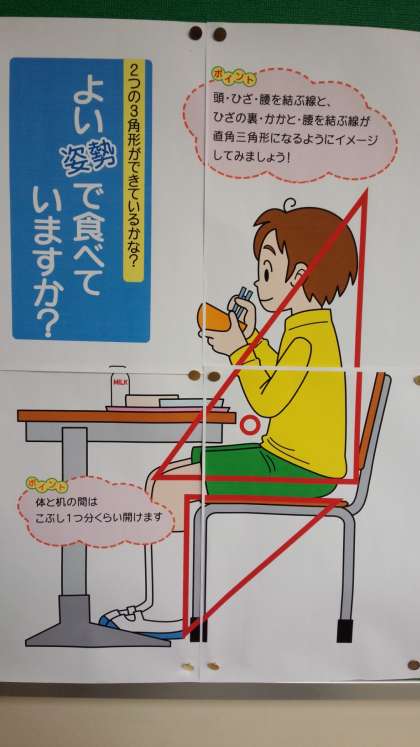 ご家庭でも、ポスターのように姿勢よくご飯を食べるようにご指導ください。