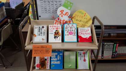 学校図書館補助員の河又さんが、あらたに冬のおすすめ本を揃えてくださいました。