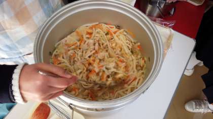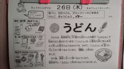 寒い日にぬくぬくの野菜たっぷり五目うどんは本当に美味しいです。しかし、いつものように、給食をいただく頃には麺がたっぷりと汁を吸っています。