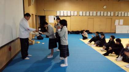 本日、放課後、2年生は和室で、1年生は武道場で、それぞれ「百人一首大会」上位入賞者による名人戦が行われました。