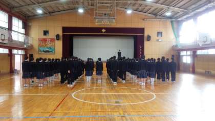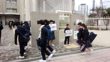 今朝も寒い中、朝早くから生活委員が学年集会の呼びかけを行ってくれています。