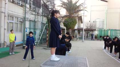 生活委員長の2年生府川さんから、チャイム着席強化週間のお知らせ