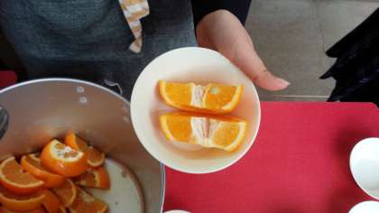 いよかんは、下の写真のように、子どもたちには2切れずつ付きます。
