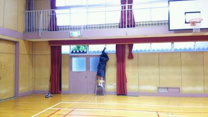 体育館フロアーの部分張替等補修工事が完了しました。昨日は、ウレタン塗装を2度行い、今日は一日、窓を全開にして冬の乾燥した空気を取り込んで乾燥させます。また、体育館内のウレタンの匂いを完全に取り除きます。