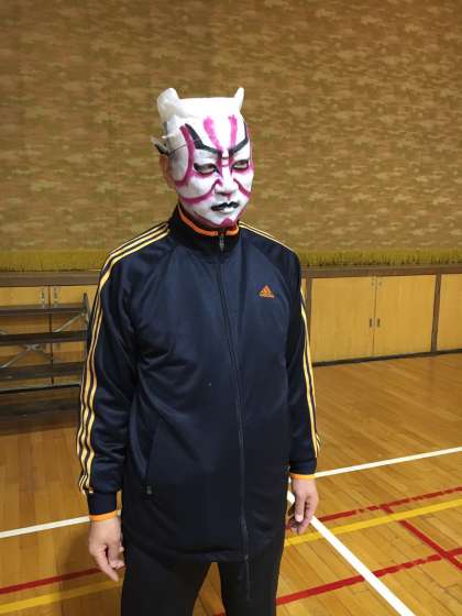 そして、立役の勇ましい「隈取(くまどり)」体験です。