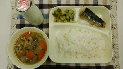 だいこん・ごぼう・にんじん・枝豆と、豊富な野菜が学校給食の特徴です。しっかり食べて健康な身体を作りましょう。