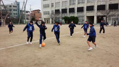 男子は体育館でバスケットボール大会、女子は運動場でサッカー大会です。