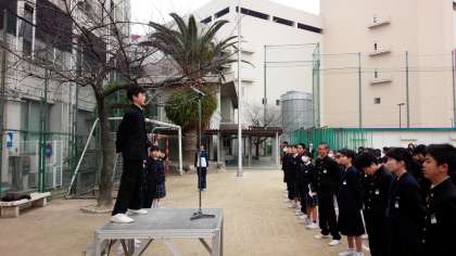 選挙管理副委員長の、2年2組 松永 泰成くんより、生徒会役員立候補者が紹介されました。