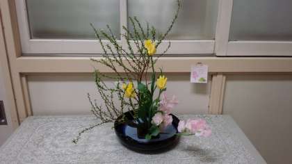 昨日、華道部の活動があり、校長室前のお花を活け替えてくださいました。