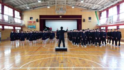 体育館では、つづいて、3年生の「卒業の歌」練習です。