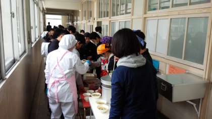 今日は、配膳員さんが1年生廊下で手伝ってくださいました。