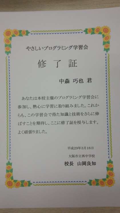 プログラミング学習会修了式