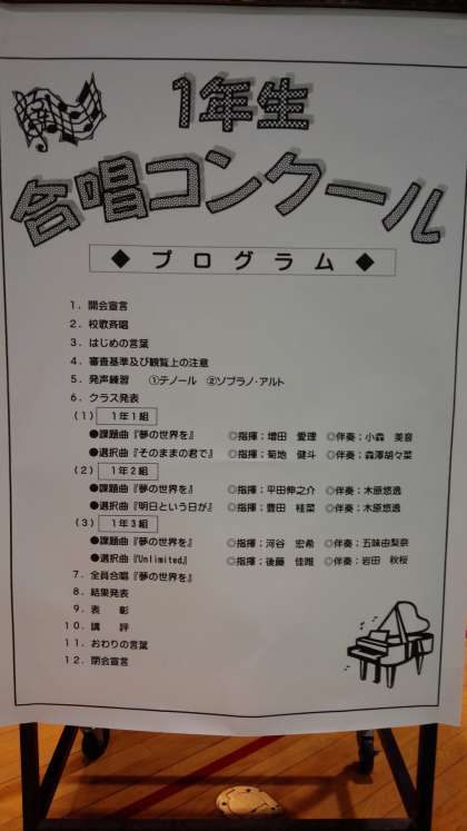 本日、3,4時間目に、1年生合唱コンクールを開催しました。