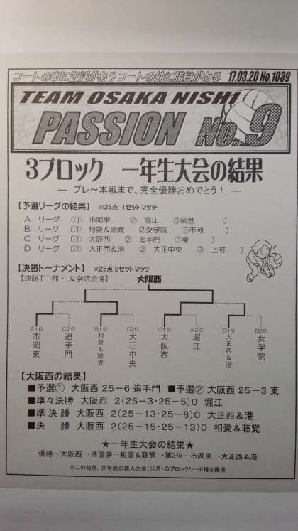 3月19日(日)、バレーボール部 3ブロック 1年生大会が開催され、完全優勝を成し遂げました。