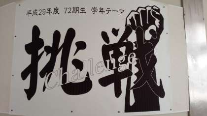 2年生廊下に、さっそく72期生の平成29年度「学年テーマ」と「学年スローガン」が掲示されています。