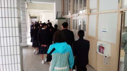 本日、4時限目は、2,3年生は学級活動、1年生は校内見学です。