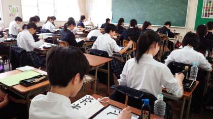 本日5時限目の総合の時間に、2年生3学級揃って、書道に取り組みました。