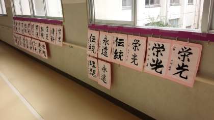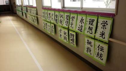 明日の土曜参観の際に、子どもたちの書道作品をご覧ください。