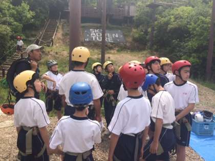 (写真は、ハイエレメントに挑戦している様子と、スタッフから説明を聞いている様子です。)