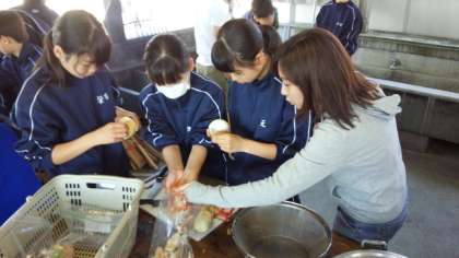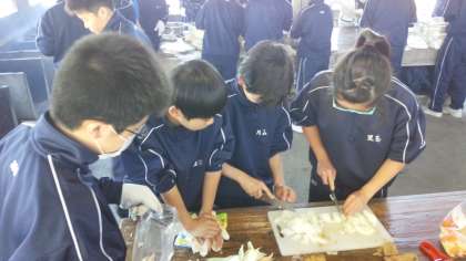 (写真は、炊事場での活動の様子です。)
