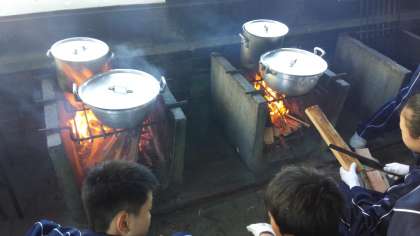 【野外炊飯が始まりました】