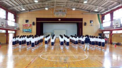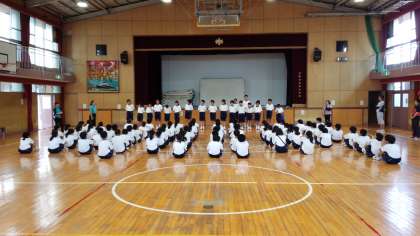 閉会式の後、体育委員・レクレーション係の皆さんが前に並んで、みんなの拍手で、この間の活躍をねぎらいました。本当にお疲れ様でした。
