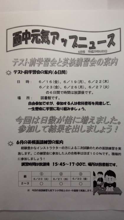 6月1日付けで、「元気アップニュース」を配付しています。ご確認ください。