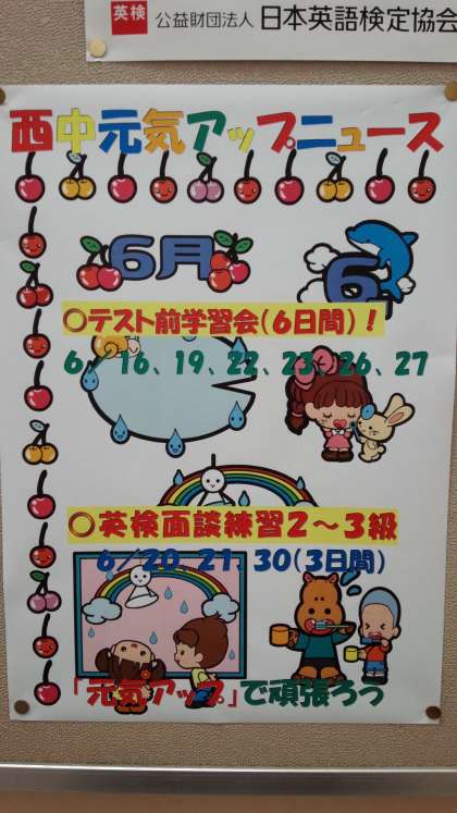 期末試験に向けての「テスト前学習会」、英検二次試験に向けての「英検講習会」のご案内です。