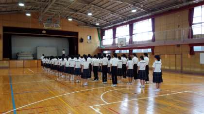 さすがは2年生、予鈴の段階で、学級代表の指示で、整然と整列、点呼をしていました。