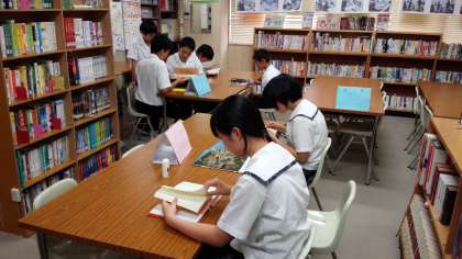 本を読んでもよし、期末テスト前なので勉強してもよし、毎日、お昼休み、放課後とも開館していますので、どんどん図書館を利用しましょう。