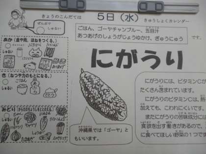 夏には食べるのに、ぴったりなゴーヤ(にがうり)を、ご家庭でもメニューの一つに加えられてはいかがですか。