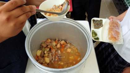 豚肉といかの煮ものは、ご覧のように豚肉といかがたっぷり入っていてとても美味しかったです。