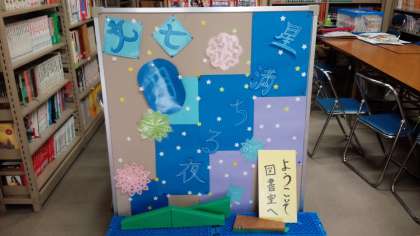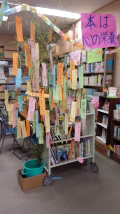 図書館入口が7月に衣替えをし七夕飾りが出迎えてくれます。