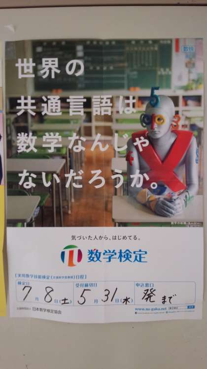 英検、漢検につづいて、明日は「第1回数学検定」です。