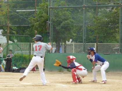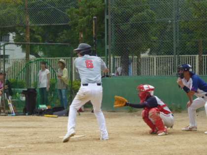 午後からの本校の第2試合、対九条東小学校戦は、4番バッターとトップバッターの2本の3ランホームランで、圧勝しました。