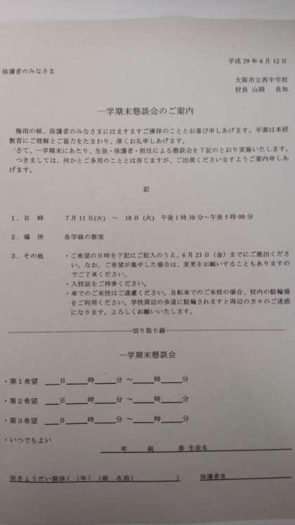 そして、明日から期末懇談です。担任の先生、保護者の方と一緒に、1学期の反省点を確認し、PDCAサイクルを生かして夏休みを過ごしてください。