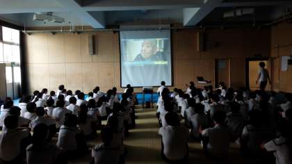 全校集会につづいて、本日、1時限目には、1年生は多目的室で、2年生は武道場で「平和学習」を行いました。