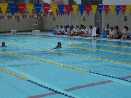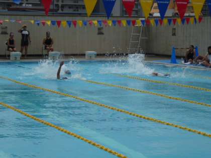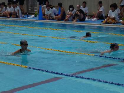 最初の種目は、25m平泳ぎ、続いて、50m平泳ぎ、そして、25m背泳ぎと続きます。