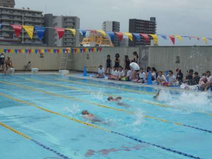 水泳大会の最後は、メドレーリレー、男女混合リレー、自由形リレーと続きます。