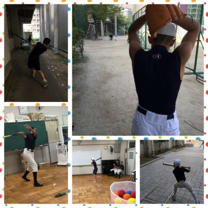 明日の2回戦に向けて練習をしています。グラウンドが使えないため、限られた空間で柔らかいボールやシャトルを使うなど工夫をして練習をしています。明日も勝つぞ!!!