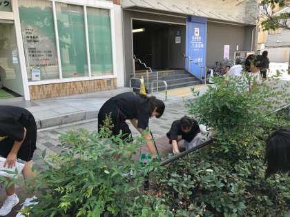 正門前から二手に分かれてローソン側と九条駅方面を清掃しました。