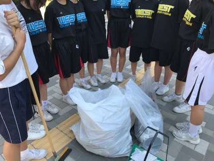 女子バスケットボール部も学期末の清掃活動に取り組みました。