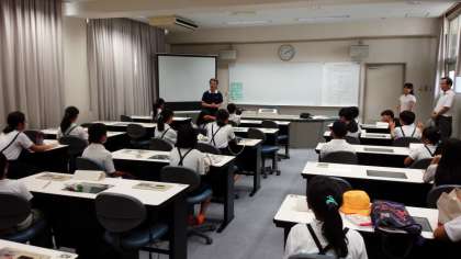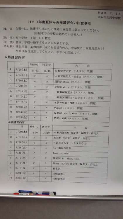 2時からは、LL教室において、「夏休み小中連携英検講習会」の開講式を行いました。