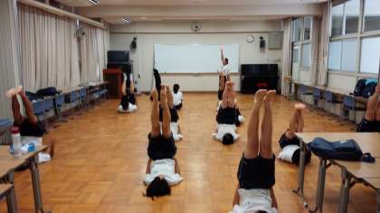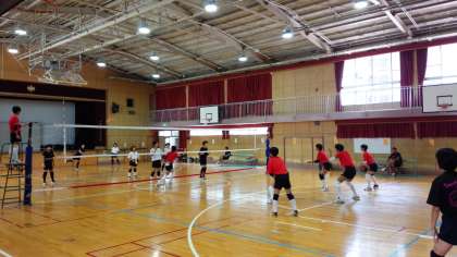 本日より早速、多目的室では3年生集団演技夏休み練習会が、グラウンドでは野球部の練習試合が、体育館ではバレーボール部の練習試合が行われています。