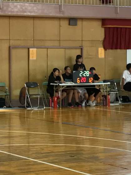 女バスは午前中、男バスの練習試合のオフィシャルをお手伝いしました。