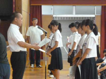 つづいて、夏季休業中にその都度ホームページでお知らせした、各部活動の賞状の伝達を行いました。